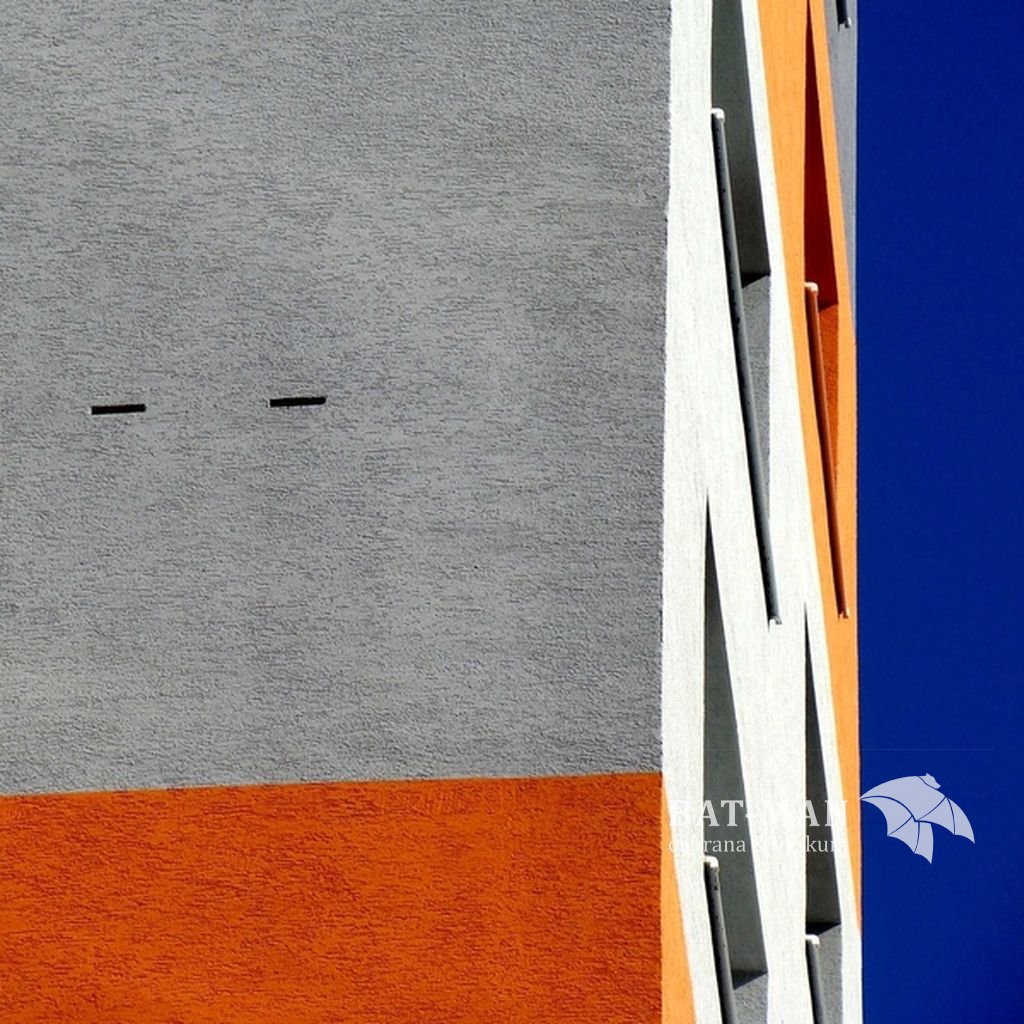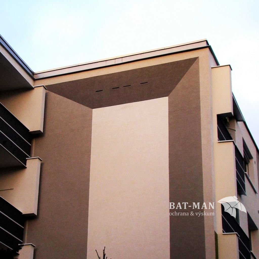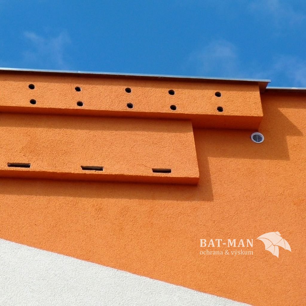 Bat house. It is made of extruded XPS polystyrene, double-chambered, suitable for integration into the insulation layer or for the facade (after facade treatment). Surface treatment is always required on the house, and if it is on the insulation layer, a roof must also be mounted - the house must be protected similarly to other parts of the insulation system. It provides shelter for several dozen bats. Also suitable for bat hibernation. The interior of the house is equipped with a layer allowing bats to hang and at the same time protecting the walls of the house.