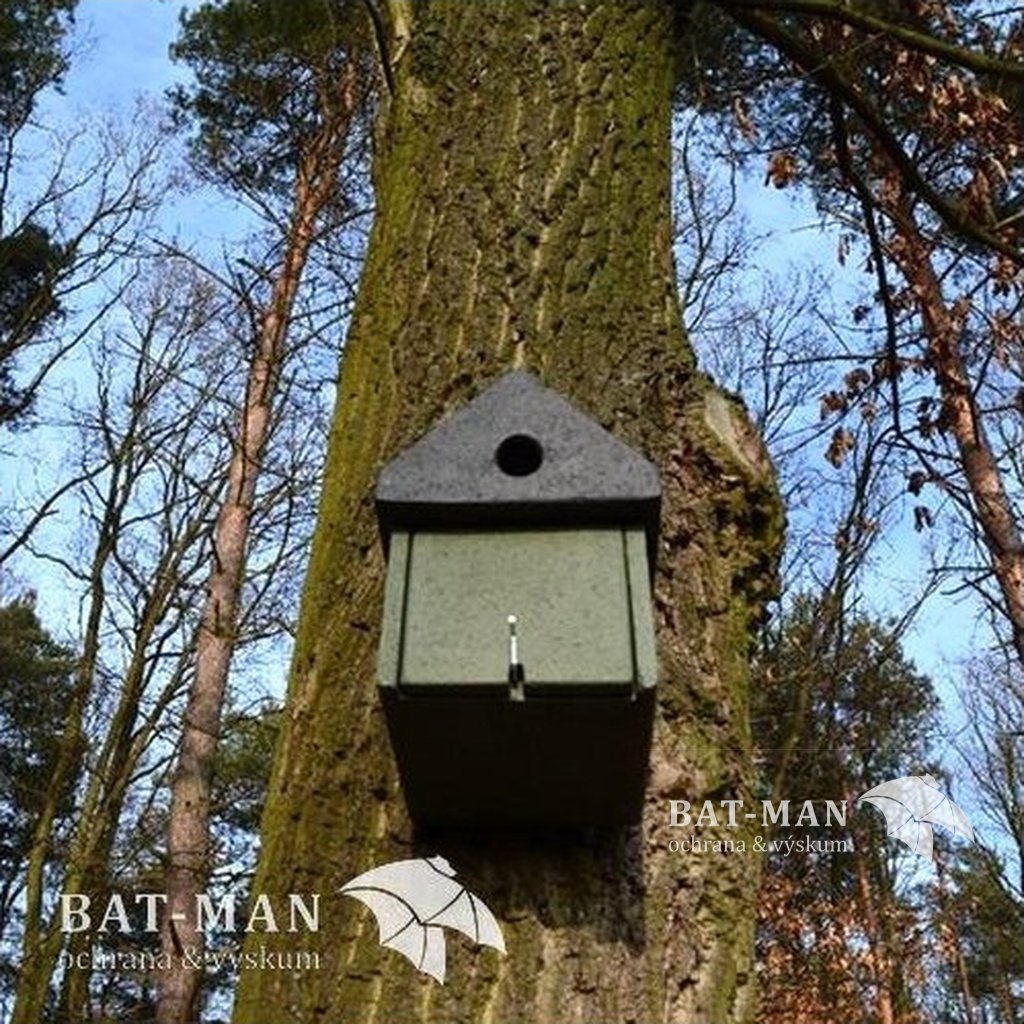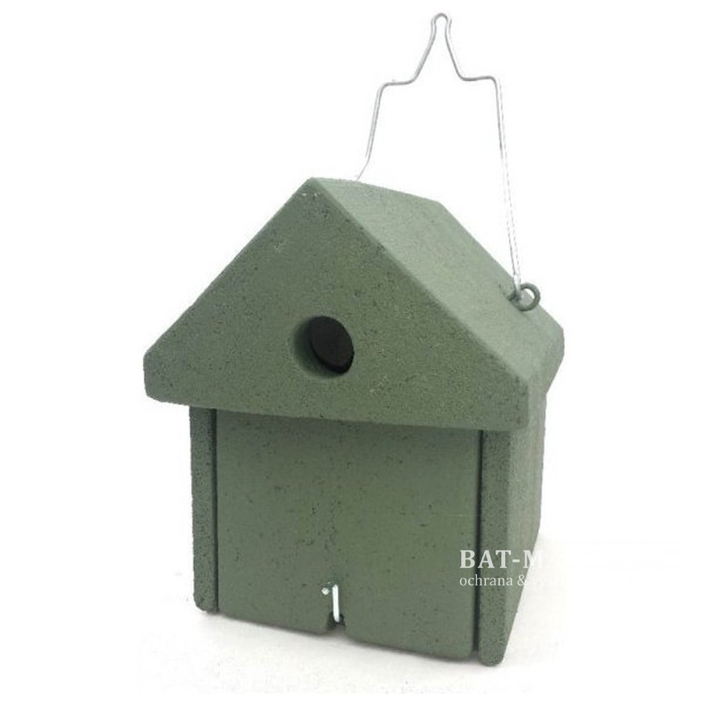 The elevated entrance on the box prevents predators from entering the inside, protecting the young birds. The box is made from ecological materials (wood concrete, ecological paint).