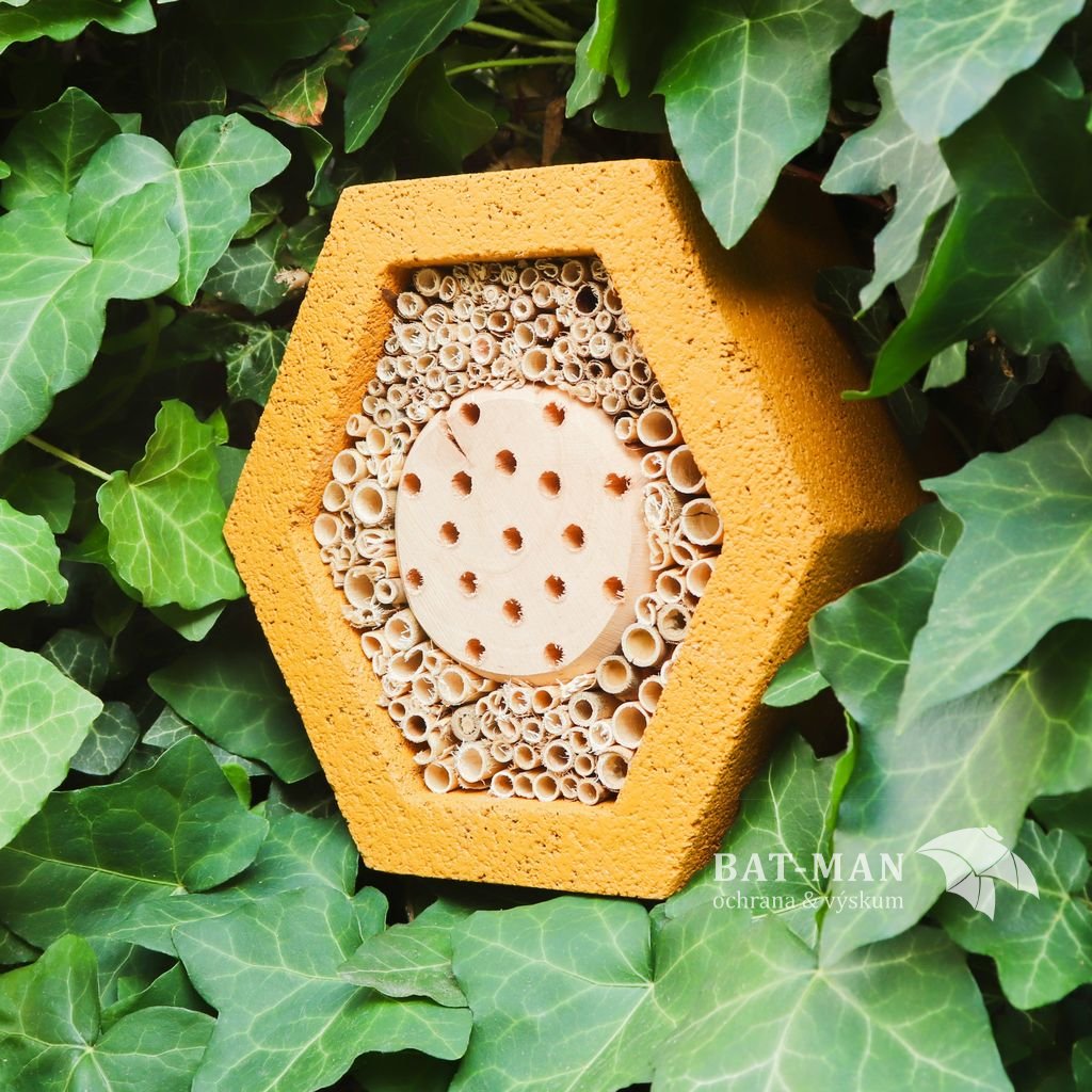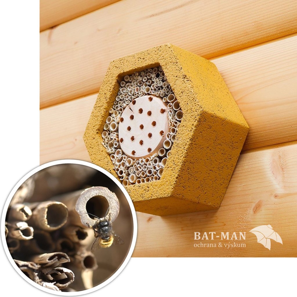 Hmyzí domček šesťhranný. Vhodný pre včely samotárky a pre iný užitočný hmyz. Včely samotárky majú významný vplyv na opeľovanie užitočných i okrasných rastlín.