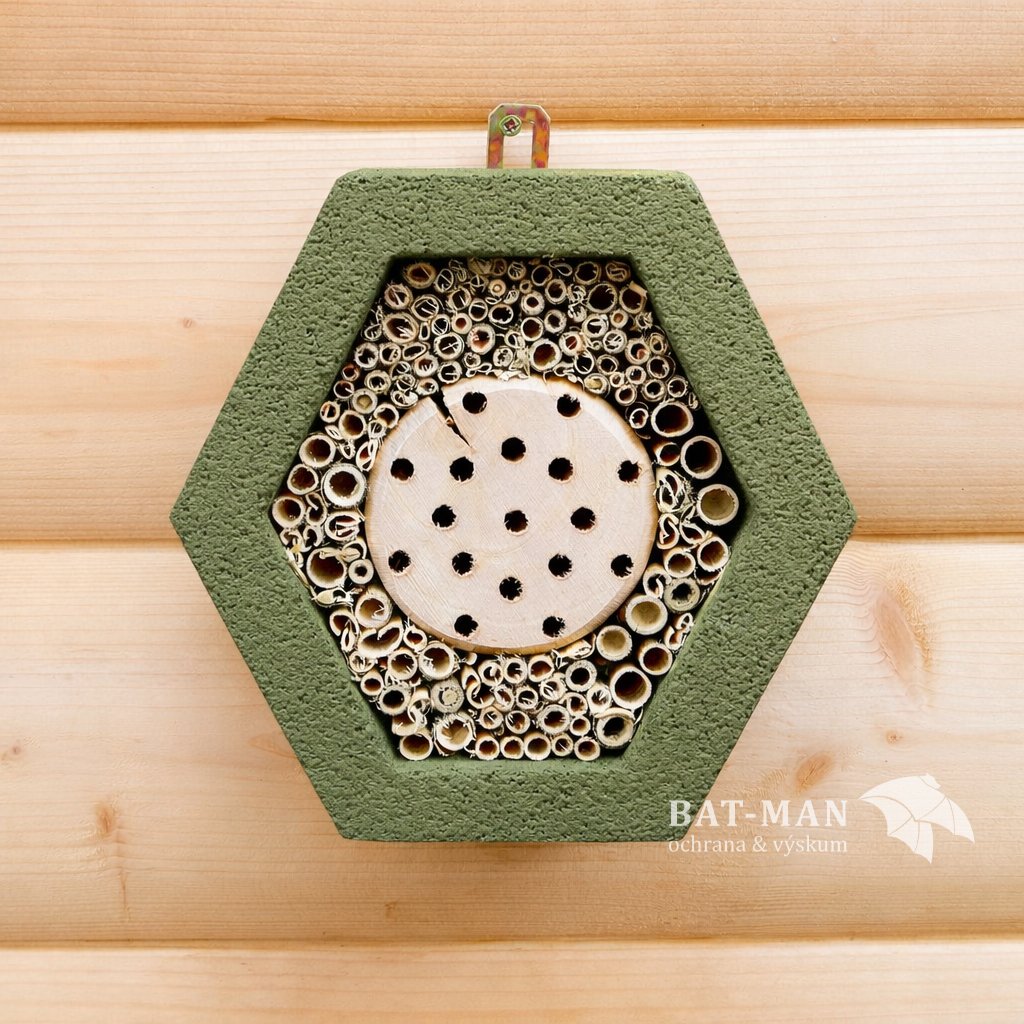 Hmyzí domček šesťhranný. Vhodný pre včely samotárky a pre iný užitočný hmyz. Včely samotárky majú významný vplyv na opeľovanie užitočných i okrasných rastlín.