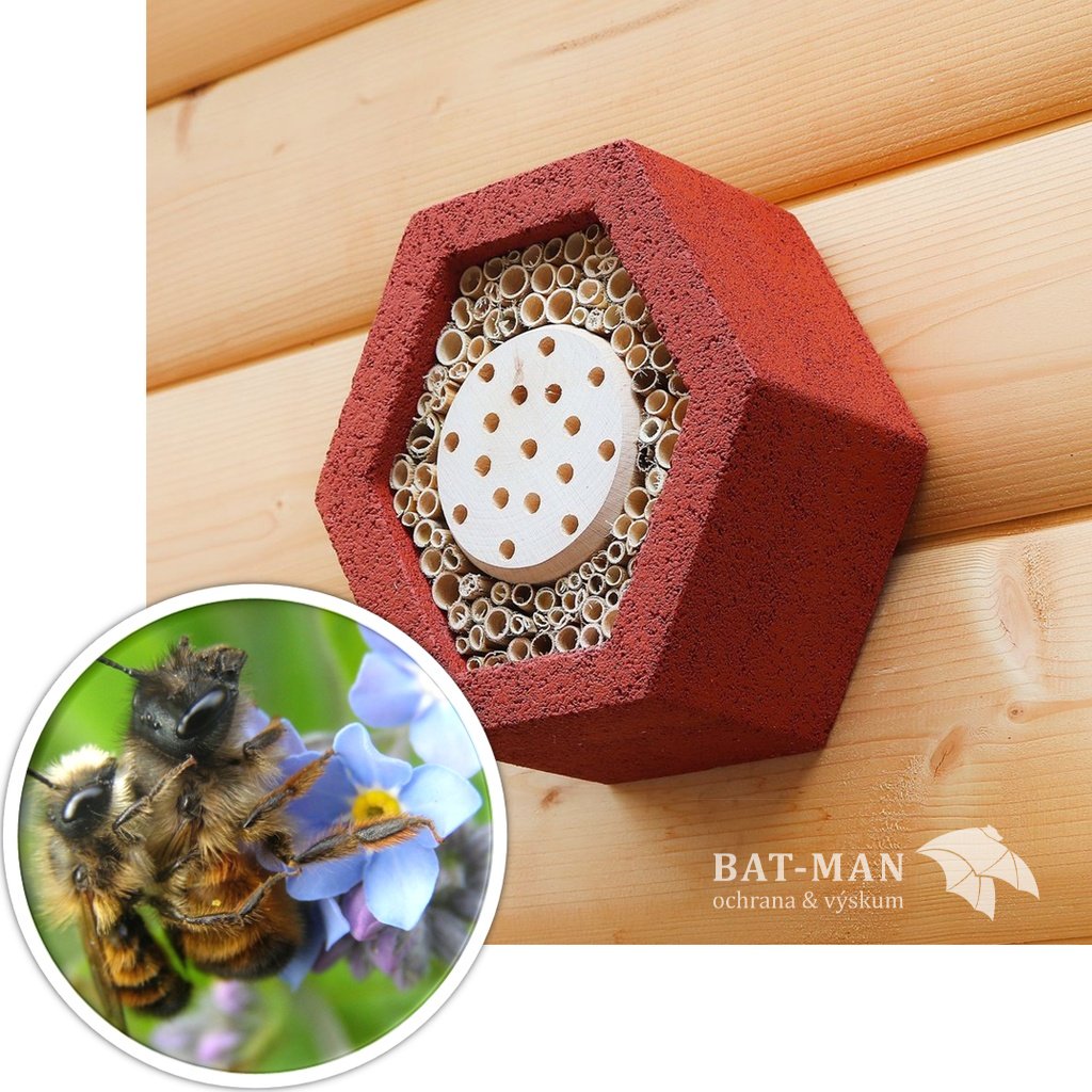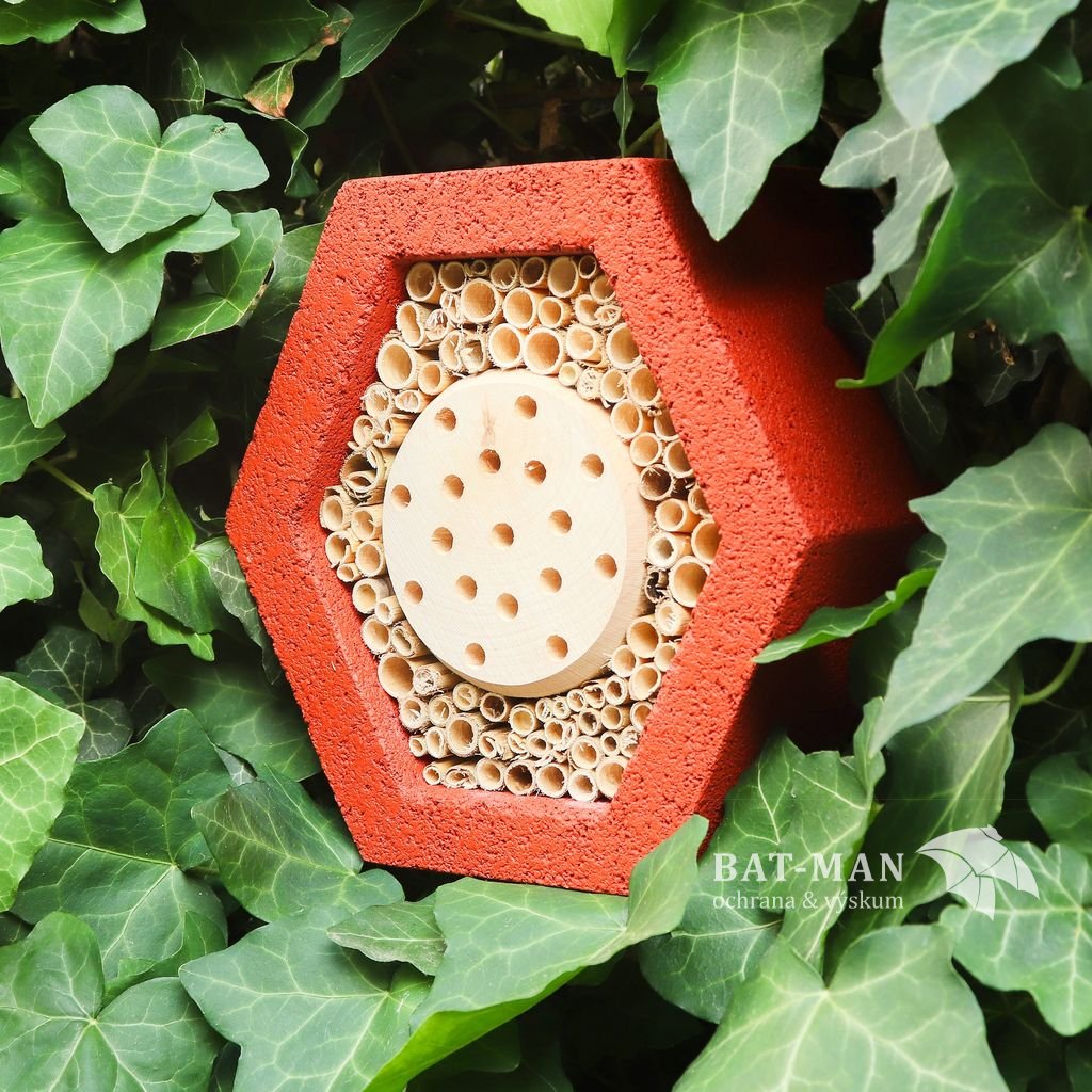 Hmyzí domček šesťhranný. Vhodný pre včely samotárky a pre iný užitočný hmyz. Včely samotárky majú významný vplyv na opeľovanie užitočných i okrasných rastlín.